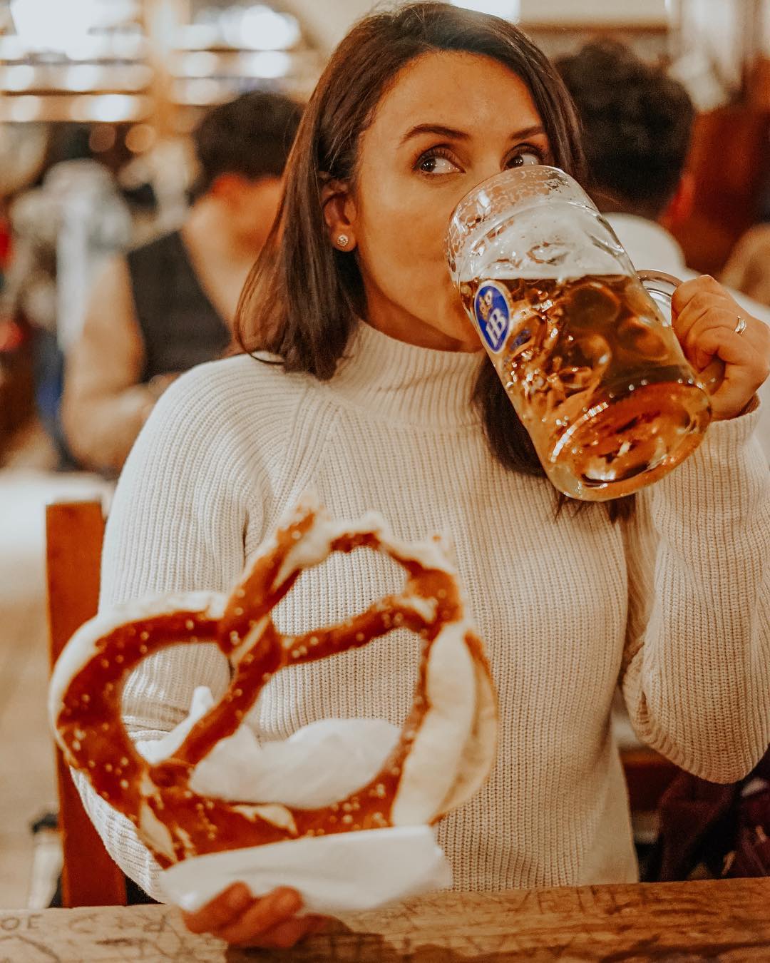 Mas se você é daqueles que pensa na Alemanha e logo já pensa em cerveja, então você precisa conhecer a sede da Hofbräuhaus. Ela também fica no centro da cidade, na cervejaria você vai encontrar tudo de mais típico da culinária alemã, sem falar das músicas típicas que fcam tocando durante todo o dia. A cervejaria foi fundada em em 1589 mas só em 1828 foi aberta ao público. Lembra que falamos que metade de Munique foi destruída pela Segunda Guerra? Pois é, a cervejaria também foi atingida e foi destruída em um bombardeio, porém foi reconstruída em 1958.