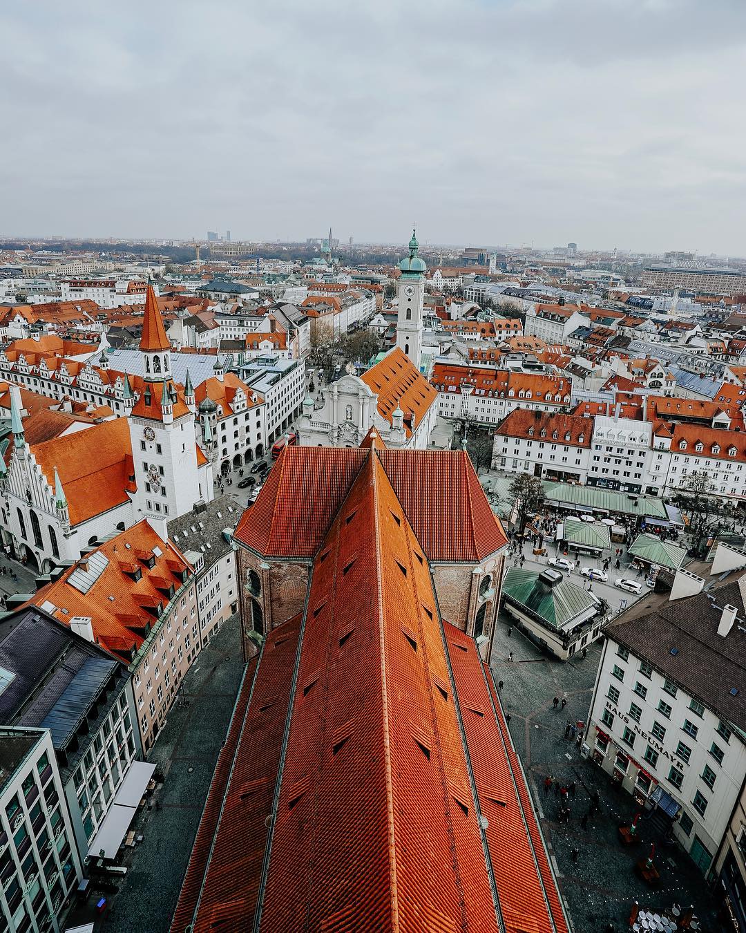 Munique tem um clima bem agradável e muito variável. É bem conhecida por ter um céu lindo e bem azul durante boa parte do ano e por ter uma galera sempre bem animada, afinal, é por lá que acontece a Oktoberfest! Mas para entender um pouquinho da cultura, também precisamos saber que diferente do Norte da Alemanha, Munique é maioritariamente católica. Mesmo com a revolução de Martinho Lutero a cidade se manteve resistente por muito tempo. Existem igrejas luteranas, mas a predominância é do catolicismo. Isso também influência e muito na arquitetura do centro histórico.